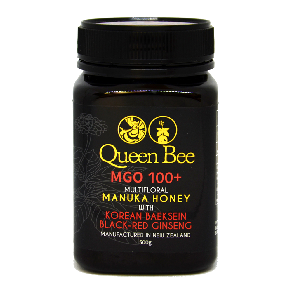 NZQueenbee MGO 100+Multifloral Manuka Honey with Korean Baeksein’s Black-Red Ginseng is a perfect blend of New Zealand manuka honey and Korean black-red ginseng powder. The Ginseng has traditionally been used in Asia for its wide variety of possible remedial benefits. The Black-Red Ginseng has been empowered by traditional methods to offer intensified experience and benefits.